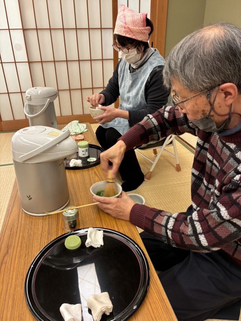 お茶の先生に教えてもらいながらお抹茶をたてています