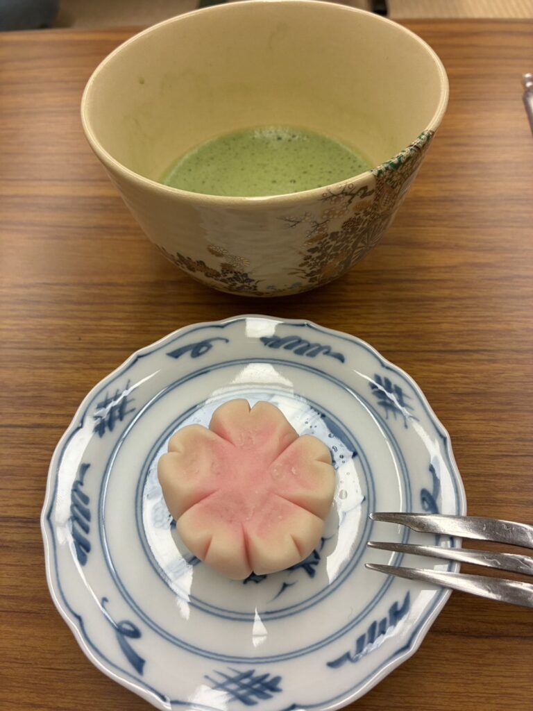 練りきり(上生菓子といわれる和菓子)とお抹茶、日本を代表する文化を一緒に味わうことができました。